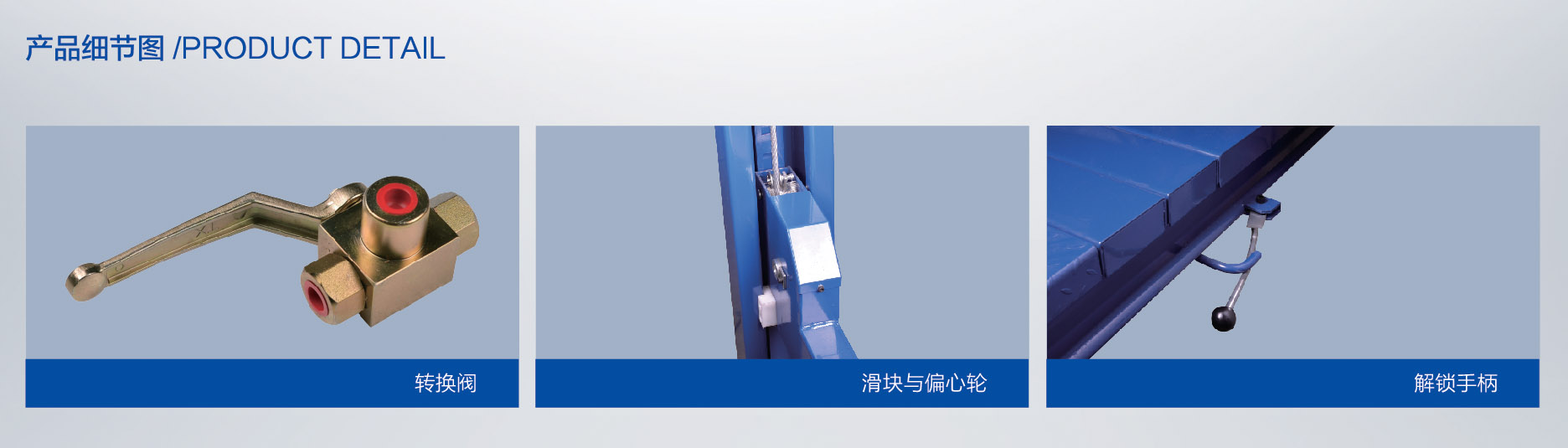 二驱动模式: 2.高品质液压泵站,提供稳定液压供应(附带过载保护),附带停电应急下降旋钮。(可选配油管防爆装置) |