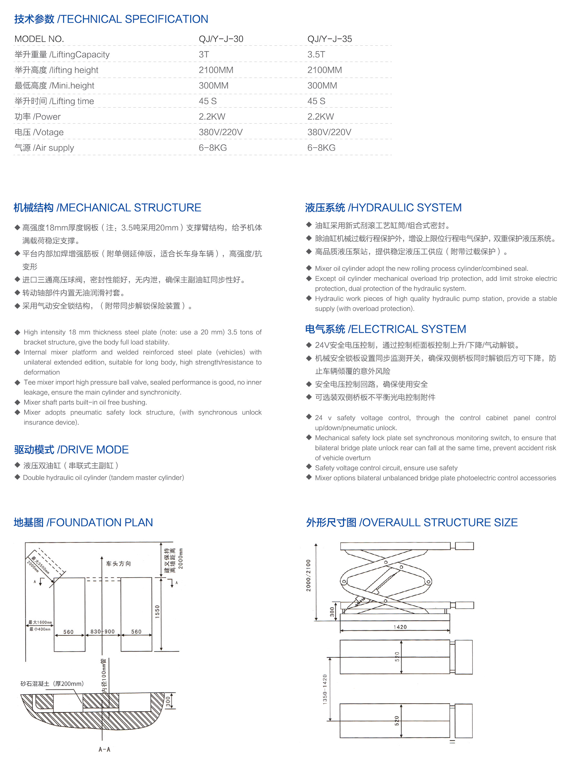 1.高强度18mm厚度钢板(注:3.5吨采用20mm)支撑臂结构,给予机体满载荷稳定支撑。