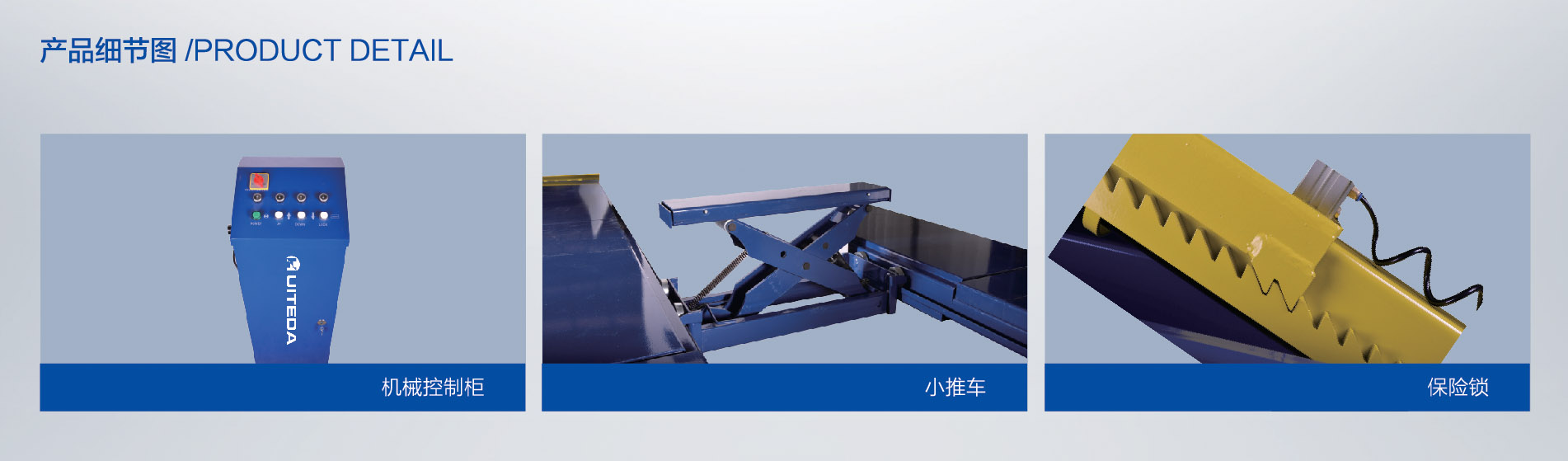 四、电气系统 2.设置最高举升位置限位行程开关保护,保护油缸不受冲击。 3.可选装双侧桥板不平衡光电控制附件。 |
