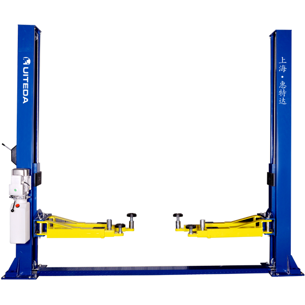 双柱式举升机是举升机的主力品种,尤其是其中的双柱液压举升机更是轿车修理企业的主要设备。它的特点是具有二个立柱,通过液压缸或丝杠螺母传动实现对汽车的举升。它有3t、3.5t、4t等几种举升重量,是目前轿车修理中最常用的品种,占据了举升机拥有量的绝大多数。